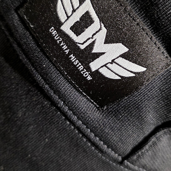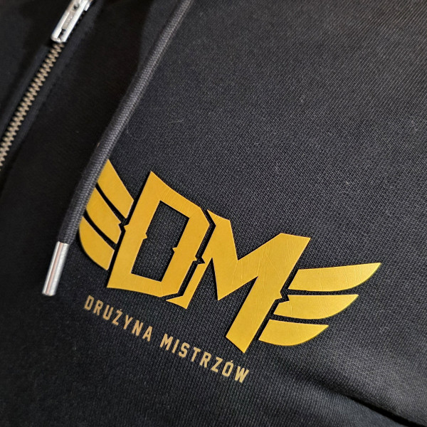 Na lewej piersi wypukła folia złota z logo DM.
