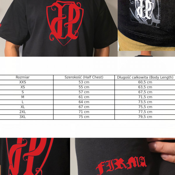 Tabela rozmiarów dostępna na zdjęciu wśród przedstawionych modeli.